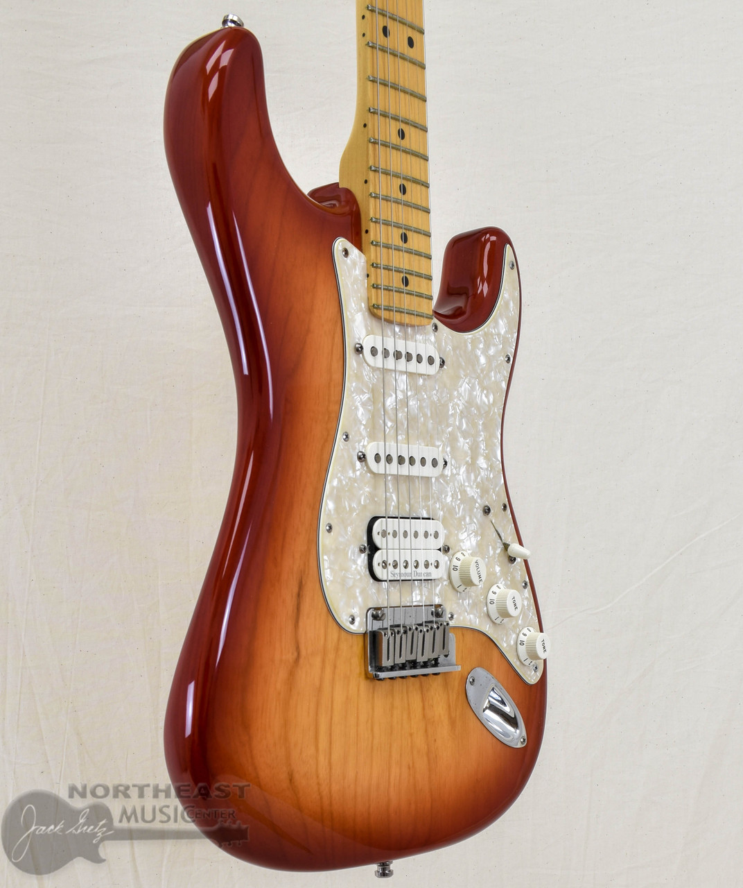 At the heart of this Strat is Fender’s HSS pickup configuration, featuring a Seymour Duncan Pearly Gates humbucker in the bridge for rich, punchy output, paired with two Texas Special single-coil pickups in the middle and neck positions. The result is a wide tonal range—from authentic Strat chime and bluesy warmth to thick, articulate rock tones—ideal for studio, stage, and session work.