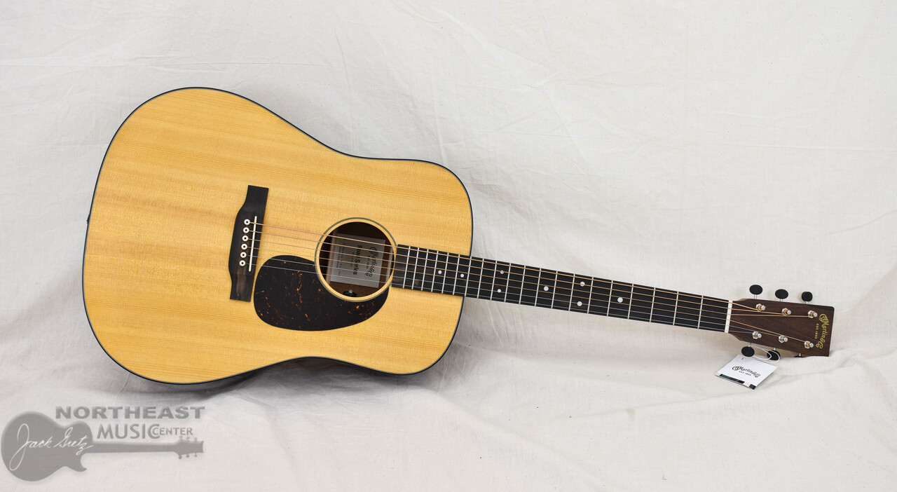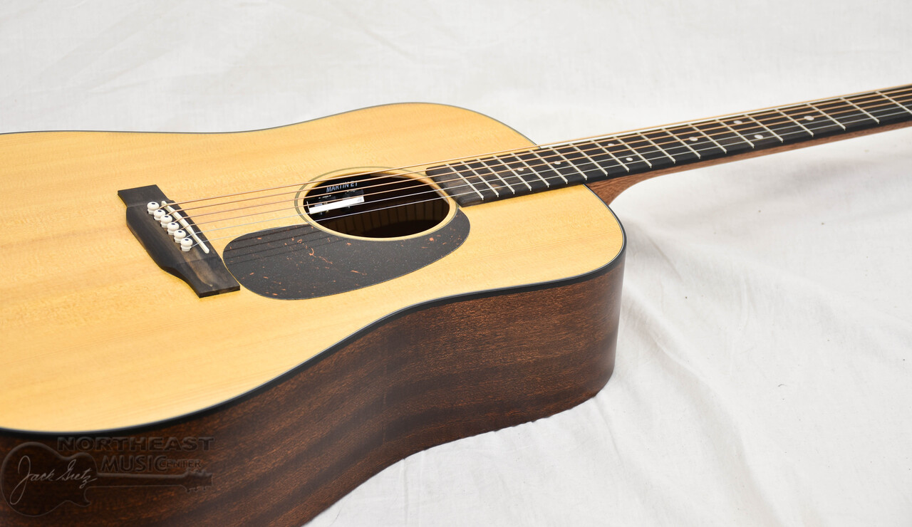The Martin D-10E Retro is a time-tested tool built to go the distance. With a solid spruce top, solid sapele back and sides, and scalloped X-bracing, it delivers bold projection, strong bass, and a dynamic voice that holds its own in any mix. The satin finish, black binding, and vintage-style open gear tuners give it a classic look, while the Performing Artist neck profile ensures a smooth, modern playing experience. Add in versatile E1 electronics with a built-in tuner and a softshell case, and you’ve got a Dreadnought that’s ready for every gig, jam, and idea that comes your way. Whether you're starting your journey or leveling up, the D-10E Retro puts iconic Martin tone within reach.