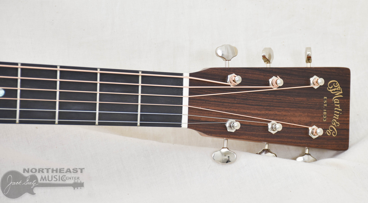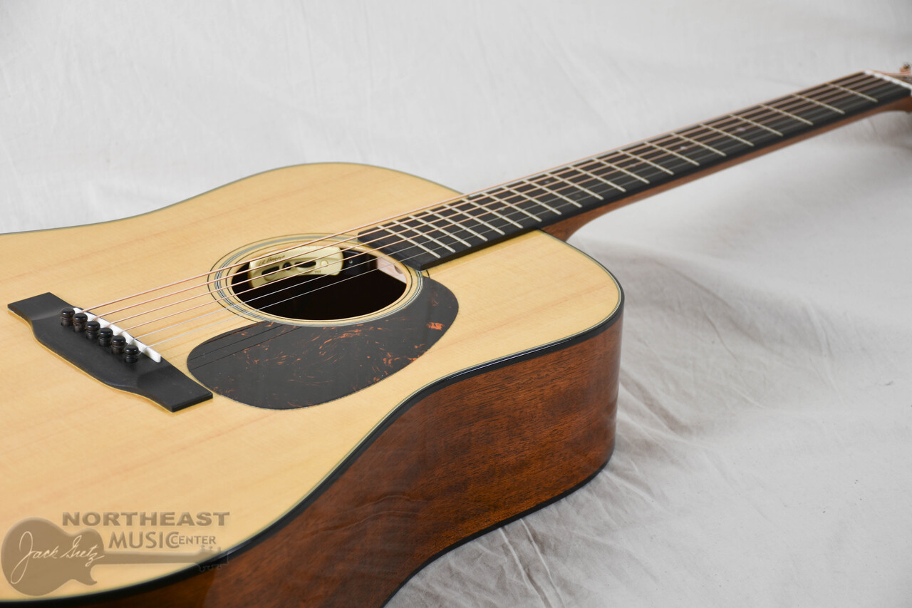 This Beautiful Martin D-18 a recent trade in here at Northeast Music Center. Our customer discovered that the dreadnaught body was too large for him. He traded this guitar for a smaller body OM-28 that we had in our inventory. This guitar is in exceptional condition with a few small pick scratch's visible on the pickguard. The playability on this dread is nice low action for easy playing or strumming. It also comes with its original hardshell case. The LR Baggs anthem system was installed to allow a wonderful plugged in experience. This one wont be around for long.