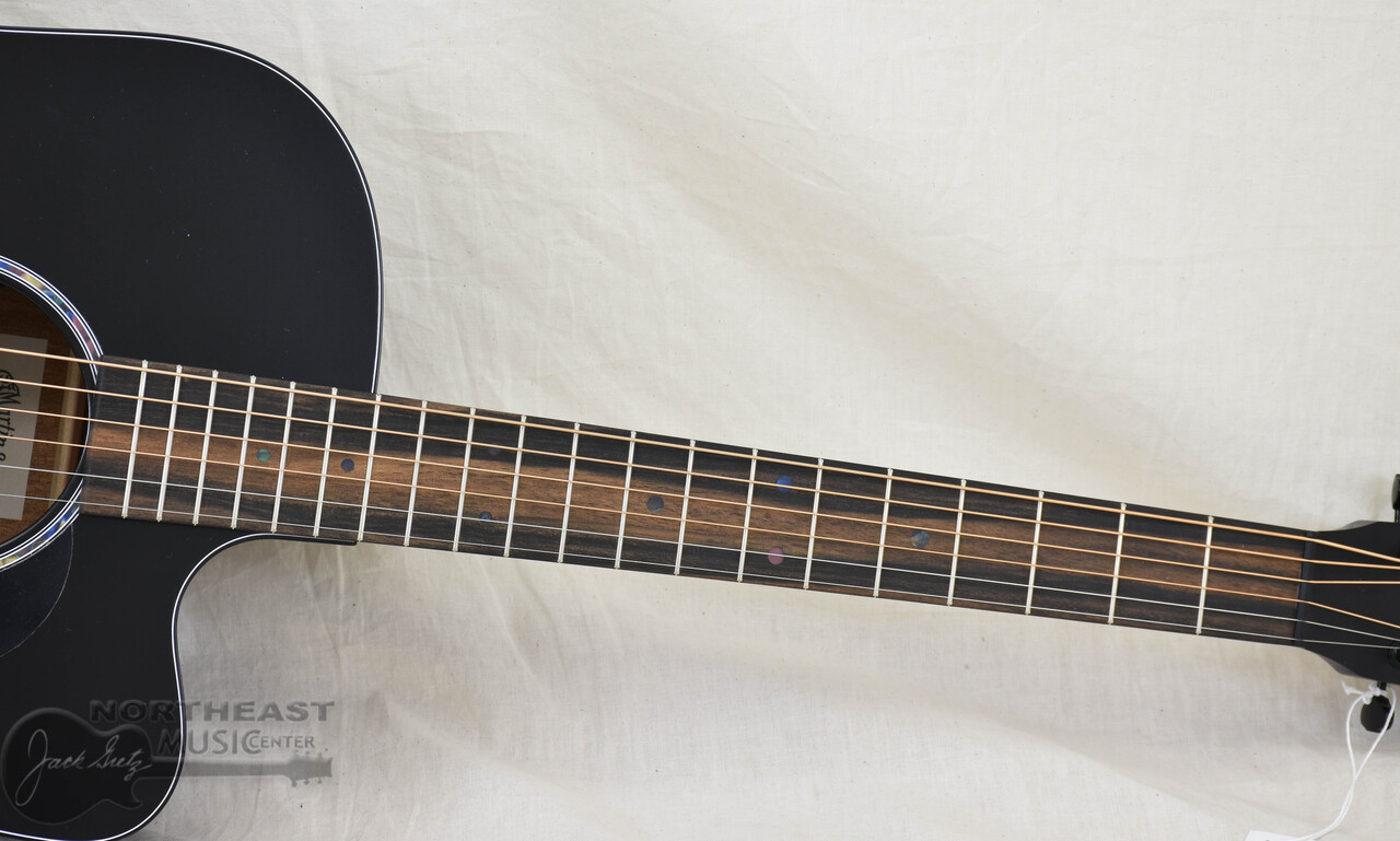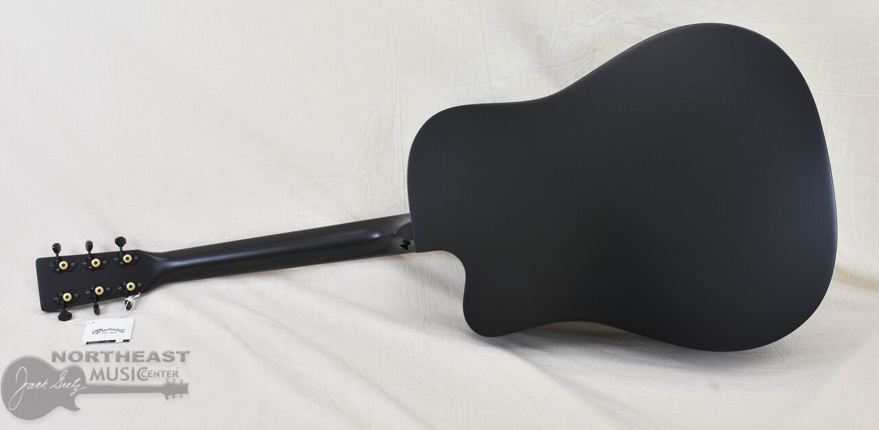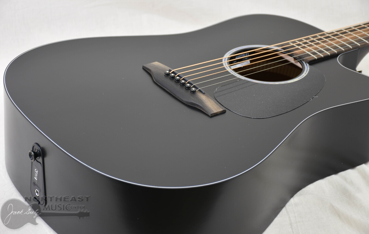The Martin DC-10E Modern Black offers a bold, all-black look backed by the tone and feel serious players demand. Its satin Dreadnought cutaway body pairs a solid spruce top with solid sapele back and sides for punchy mids, clear trebles, and low-end power. Scalloped X-bracing enhances projection and clarity, while the cutaway invites you to explore the highest frets with ease. A Performing Artist neck with high-performance taper keeps playability smooth and fast, and blacked-out appointments—including the binding, tuners, and pickguard—add to its stealth appeal. With versatile E1 electronics, a built-in tuner, and a softshell case, the DC-10E Modern Black is built to perform—on stage, in the studio, and anywhere your music takes shape.