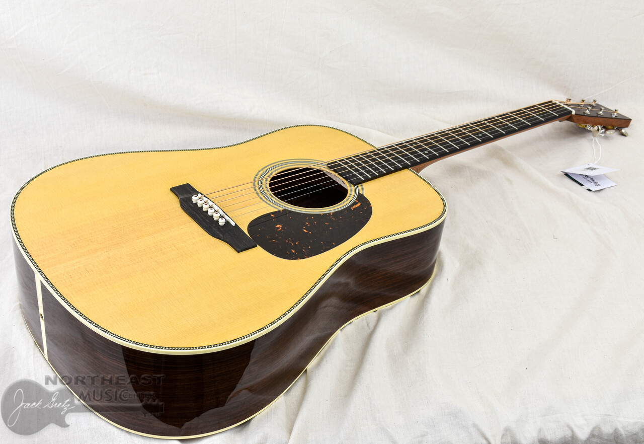 The Martin HD-28 is a legendary acoustic guitar, trusted by generations of players and played by countless icons across genres. Its Dreadnought body size and scalloped bracing delivers the bold, projective tone with strong bass, clear trebles, and rich overtones that has defined acoustic music for nearly a century. Handcrafted with a solid spruce top and solid East Indian rosewood back and sides, the HD-28 offers a resonant, balanced voice for all playing styles. Bold herringbone top inlay and an ebony fingerboard with abalone diamond and square inlays add a vintage-inspired touch. The satin neck, featuring a Golden Era (GE) Modified Low Oval profile, high-performance taper, and 25.4" scale length, ensures effortless playability. Complete with antique white binding, an ebony bridge with bone pins, and nickel open gear tuners, the HD-28 blends timeless craftsmanship with modern versatility. Available in a variety of gloss options, it’s a guitar you can trust to unleash the artist within.