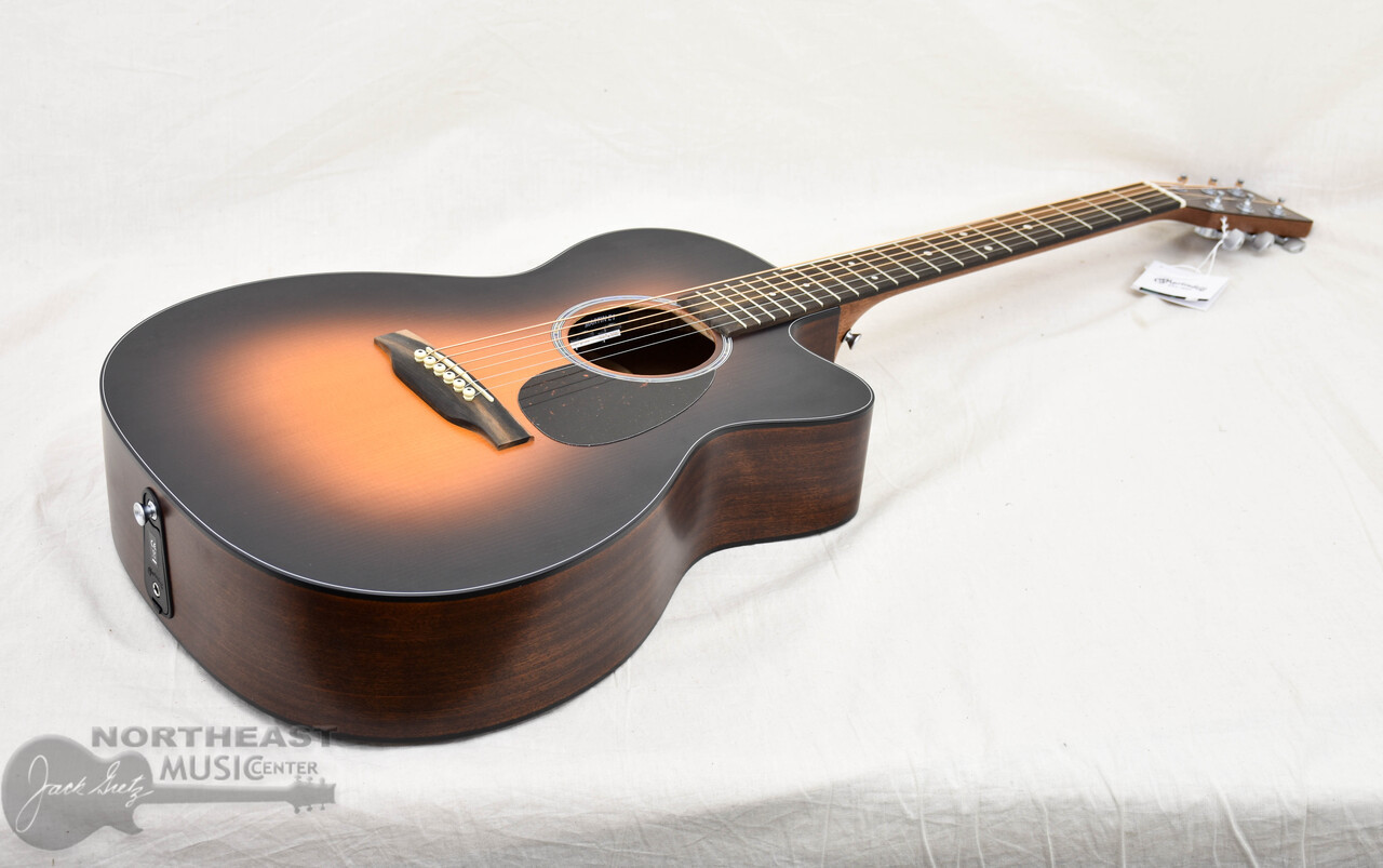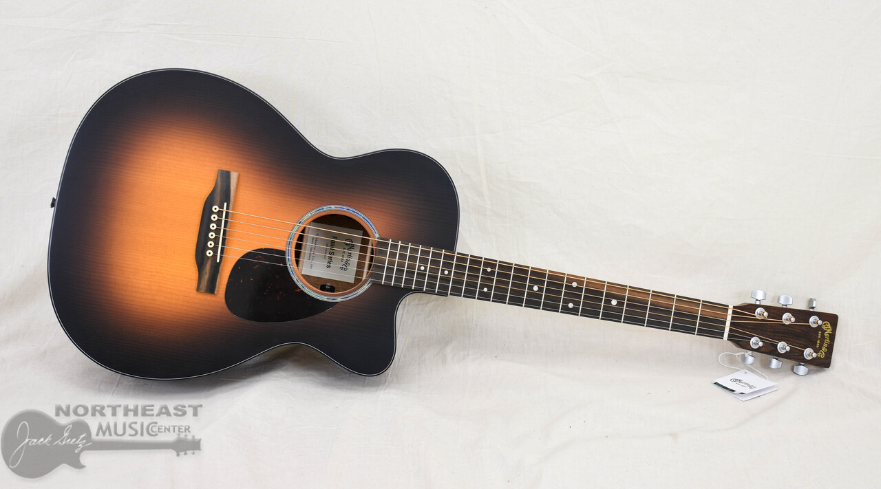The Martin OMC-10E Modern Burst pairs a bold 1935 sunburst top with a satin-finished OM cutaway body for comfort, style, and performance. A solid spruce top and solid sapele back and sides deliver balanced tone across all six strings, with the OM’s longer scale length adding extra projection and clarity. Scalloped X-bracing enhances responsiveness, while the cutaway gives easy access to the highest frets. A Performing Artist neck with high-performance taper keeps playability smooth and fast, while faux mother-of-pearl fingerboard inlays nod to classic Martin design. With versatile E1 electronics, a built-in tuner, and a softshell case, the OMC-10E Modern Burst is built to inspire and perform wherever your music leads. Great new addition here at Northeast Music!