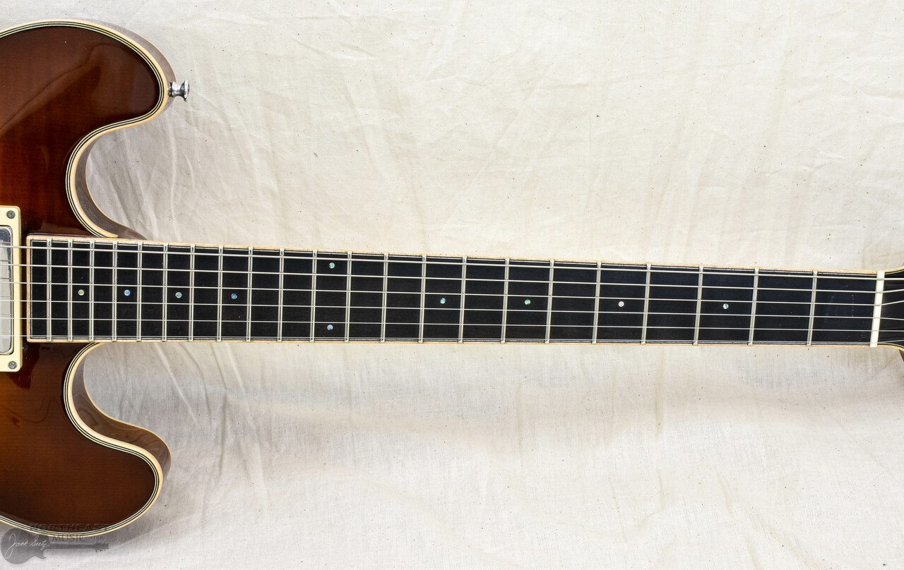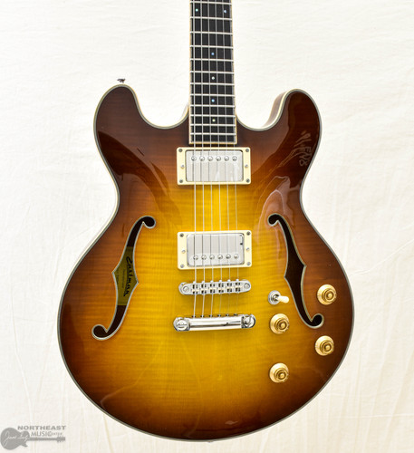 This all solid wood Eastman Thinline comes equipped with Bare Knuckle BC Old Guard Custom Humbuckers and Gotoh Hardware. Hardshell Case included with the guitar!