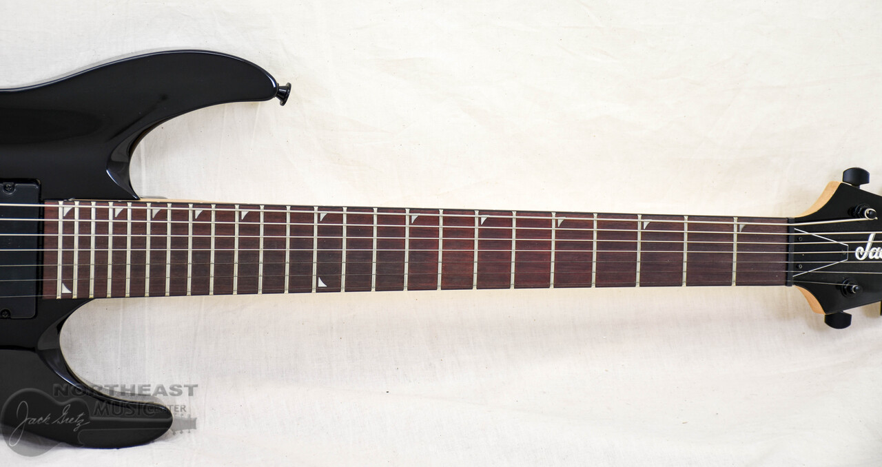 Powered by direct mount dual Jackson high-output humbucking pickups, the JS22-7 DKA HT is also equipped with a three-way blade switch, single volume and tone controls, compensated string-through-body fixed Jackson HT7 bridge, sealed die-cast tuners, and a 3x4 (3 over, 4 under) AT-1 JS22-7 DKA HT is finished in a slick gloss Black finish with all-black hardware.