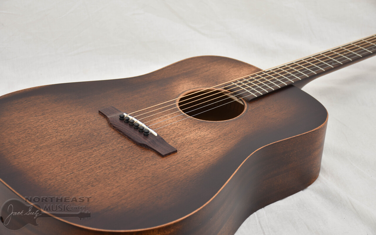 The D-15M StreetMaster® pairs all-solid mahogany construction with a beautifully worn satin finish for vintage vibe and bold Dreadnought tone. Comfortable, great-sounding, and road-ready, it’s built to feel like an old favorite.