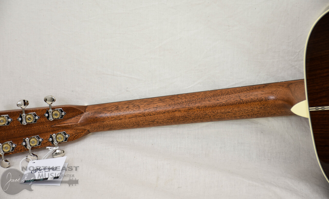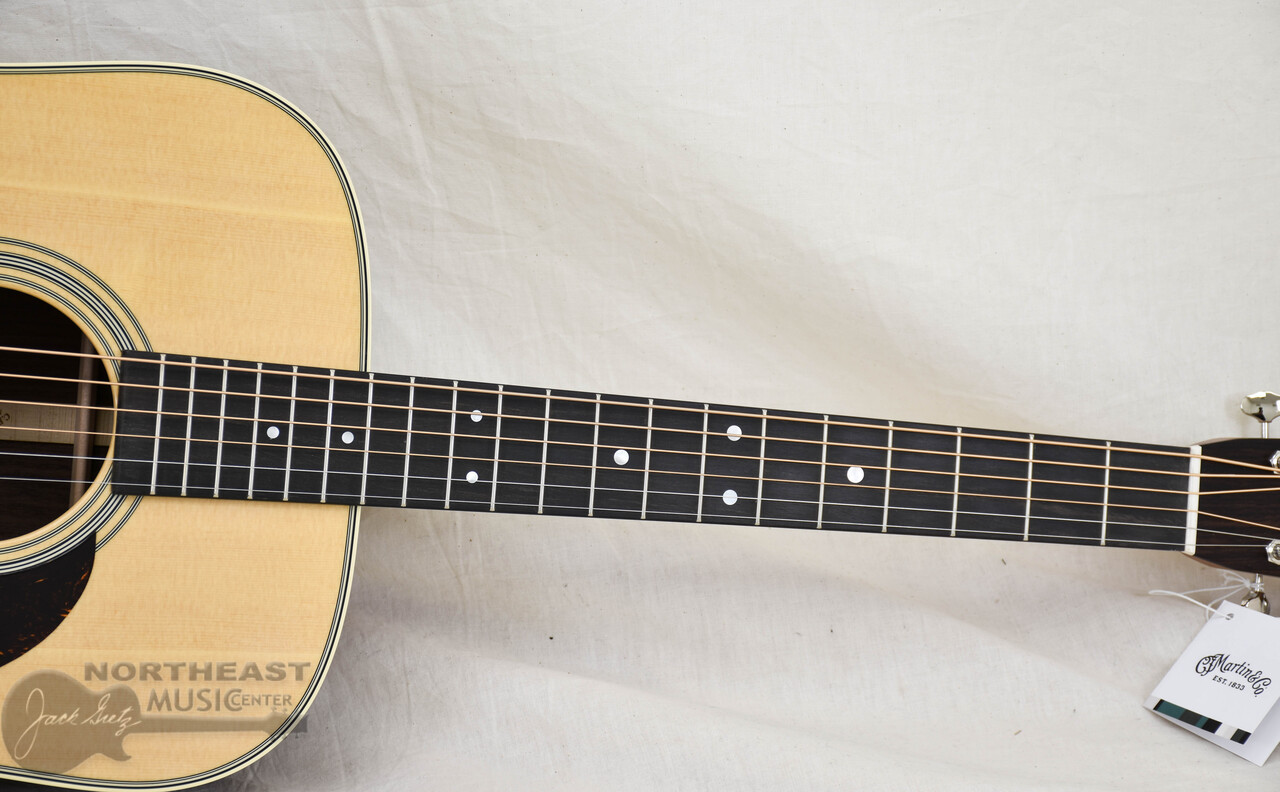 The Martin D-28 is widely regarded as the most iconic acoustic guitar in the world, trusted by generations of players and played by countless legends across genres. Its Dreadnought body size and scalloped bracing delivers the bold, projective tone with strong bass, clear trebles, and rich overtones that has defined acoustic music for nearly a century. Handcrafted with a solid spruce top and solid East Indian rosewood back and sides, the D-28 produces a resonant voice that’s beautifully balanced for all playing styles. The satin neck, featuring a Golden Era (GE) Modified Low Oval profile, high-performance taper, and 25.4" scale length, ensures smooth, effortless playability. With antique white binding, an ebony fingerboard with mother of pearl dot inlays, an ebony bridge with bone pins, and nickel open gear tuners, the D-28 blends timeless craftsmanship with modern playability. Available in a variety of gloss and satin options, the D-28 is the guitar you can trust to unleash the artist within.