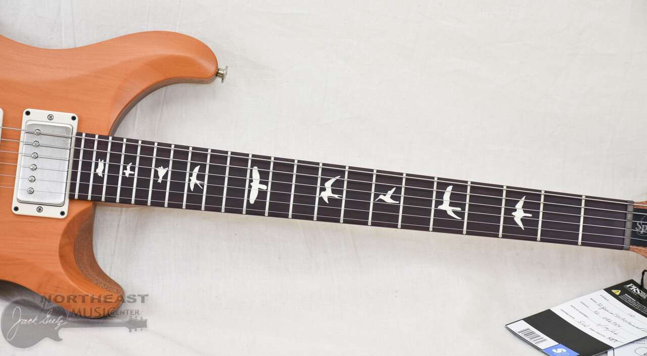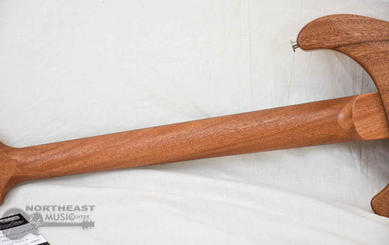 The woods featured on this model include a Peroba Rosa top, Cuban mahogany neck, and Guaribu fretboard. Peroba Rosa, typically used as siding in Brazil, was selected for the top wood. The density of this 100-150 year old wood combined with the semi-hollow body construction gives the S2 Special Semi-Hollow Reclaimed Limited Edition a unique sound that is punchy but also warm and full. The Cuban mahogany used for the necks was purchased from Puerto Rico; some of this wood was salvaged from trees blown down by Hurricane Maria in 2017. Finally, the Guaribu Preto fretboards are sourced from Brazil, where this wood was historically used as support beams for houses. These guitars are left Natural in color and finished in satin nitro. Any nail holes, wear, or discoloration have been left in the top wood to showcase its history.