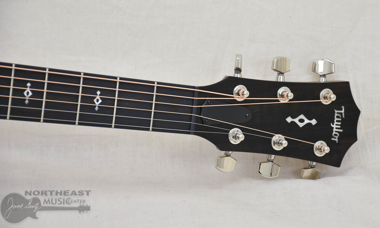 This versatile model boasts solid sapele back and sides paired with a Sitka spruce top in a gloss-finish Grand Auditorium body. The result is a punchy, shimmering midrange with vibrant trebles balanced by a warm, woody low end. Its tonal depth is enhanced by new scalloped V-Class bracing, which also increases volume, sustain and pitch accuracy. A slender, long-tenon Action Control Neck™ delivers signature Taylor playability and boosts low-end resonance. The groundbreaking design enables players to make easy, on-the-fly string height adjustments.